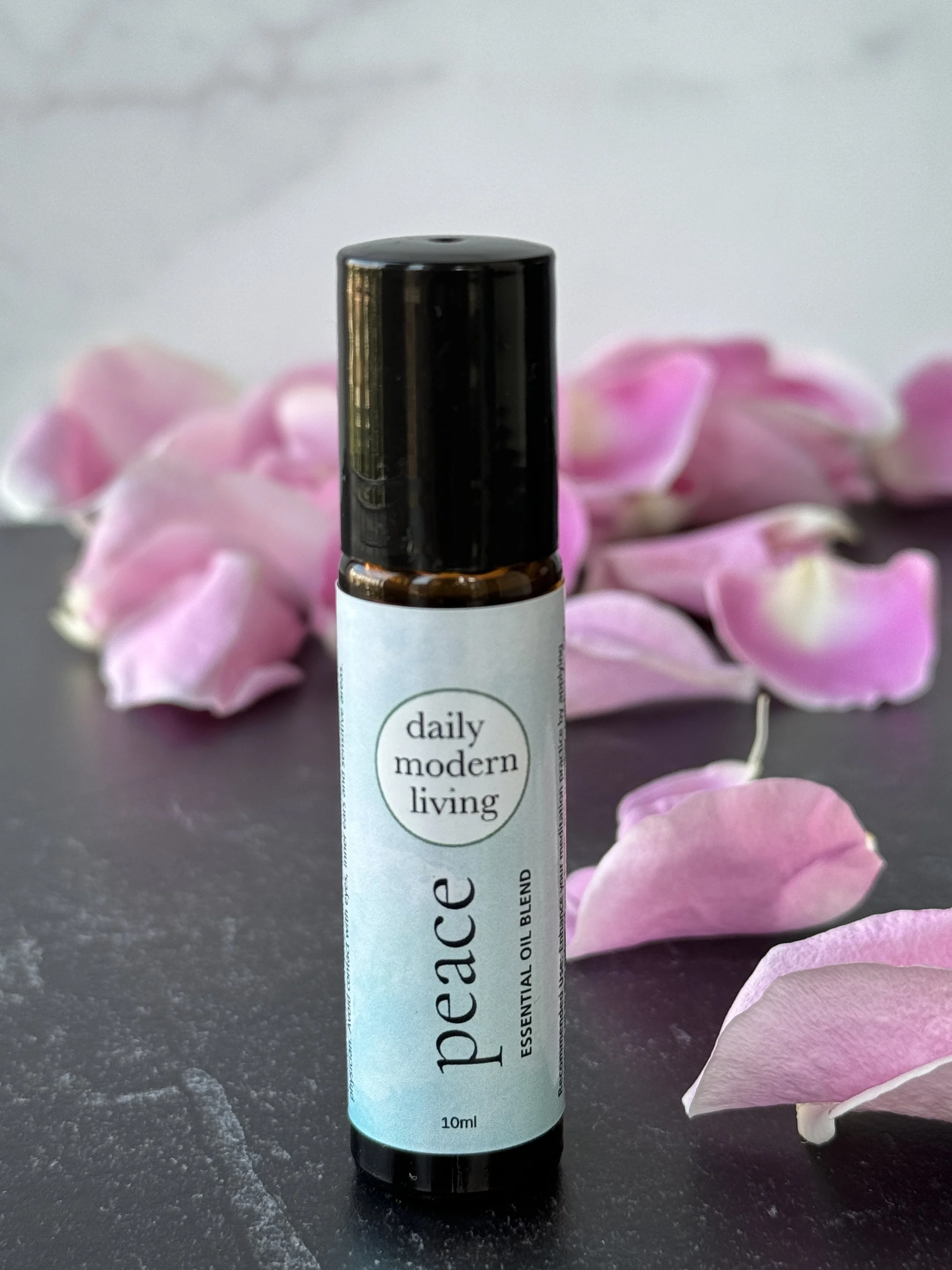 I created the peace essential oil roller to help people find peace in the midst of uncertainty. It can be used in tandem with my Finding Peace guided meditation by applying essential oil to the palms of your hands, rubbing together, then inhaling deeply before meditating. You can also apply essential oil to pulse points or the soles of your feet to help you feel relaxed and calm.